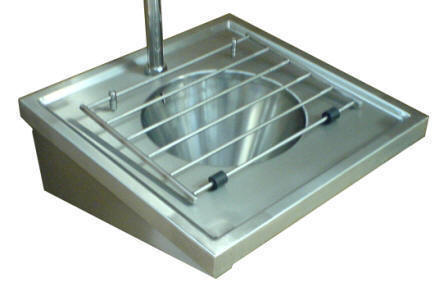 (600mm L x 600mm W). Complete with stainless steel hinged bucket grid, plastic